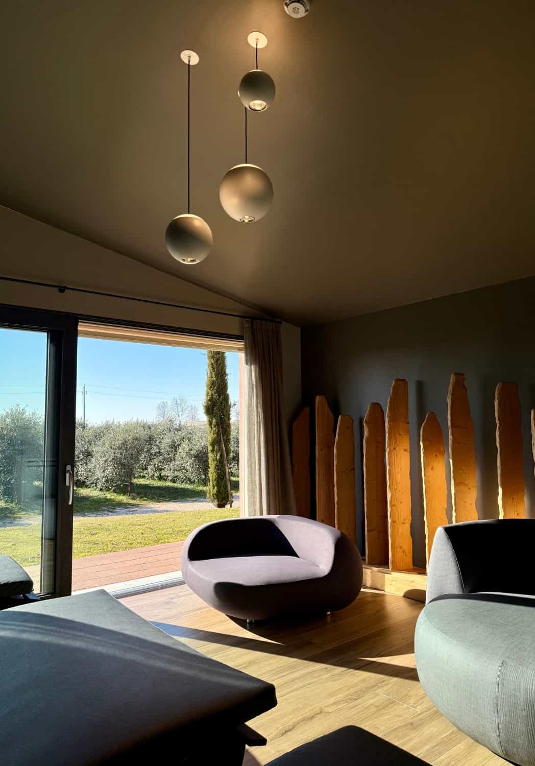 Una sala pensata per momenti di relax e riposo, grazie a comodi lettini ergonomici e con vista sull’uliveto di IDA.